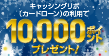 期間中にエントリーのうえ、キャッシングリボ(カードローン)を合計10万円以上ご利用で、10万円を1口として抽選で10名様に10,000ポイントプレゼント。