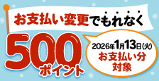 期間中、キャンペーンにご応募のうえ、2026年1月13日お支払い分(ショッピング・キャッシング)から合計5,000円以上を【あとからリボ】・【あとから分割】へお支払い変更された方にもれなく500ポイントプレゼント!