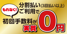 キャンペーン期間中、対象店舗にて、UCSマークのついたカードで分割払い(3回払い以上)をご利用いただくと、初回の手数料をキャッシュバック!