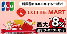 対象のロッテマートのサービスカウンターなどでJCBカードとパスポートを提示すると、その日のお買い物から使える最大8%オフクーポンを進呈。