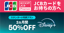 ディズニープラス月額プラン3ヵ月間50%オフ