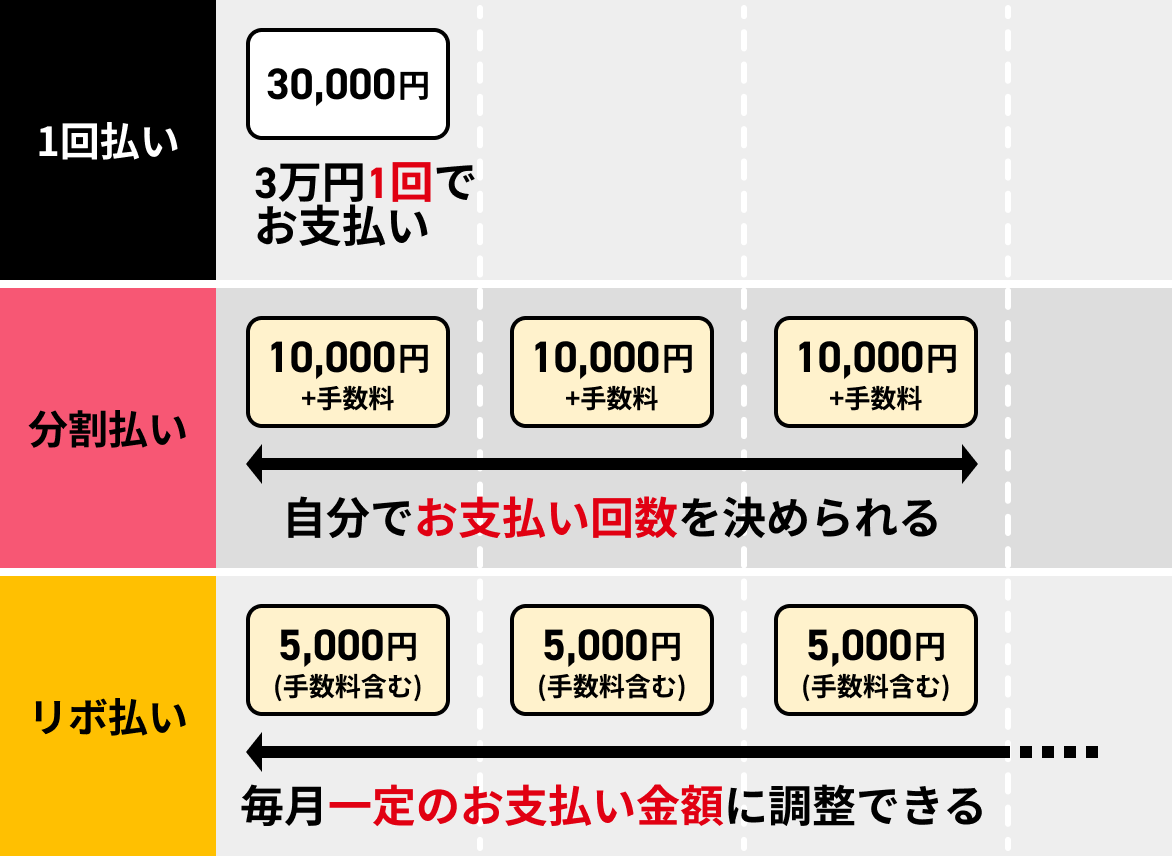 - ※3回以上の分割払い・ショッピングリボ払いは手数料がかかります。