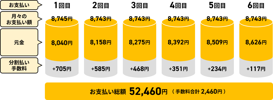分割払いはご利用ごとに2回~30回払いの中から、ご希望のお支払い回数を指定できる便利なサービスです。